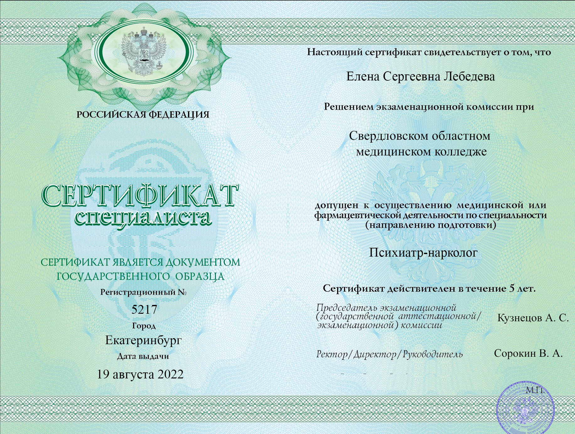 Елена Сергеевна Лебедева врач нарколог клиники доктора Стукаловой в Новом Кяхулае